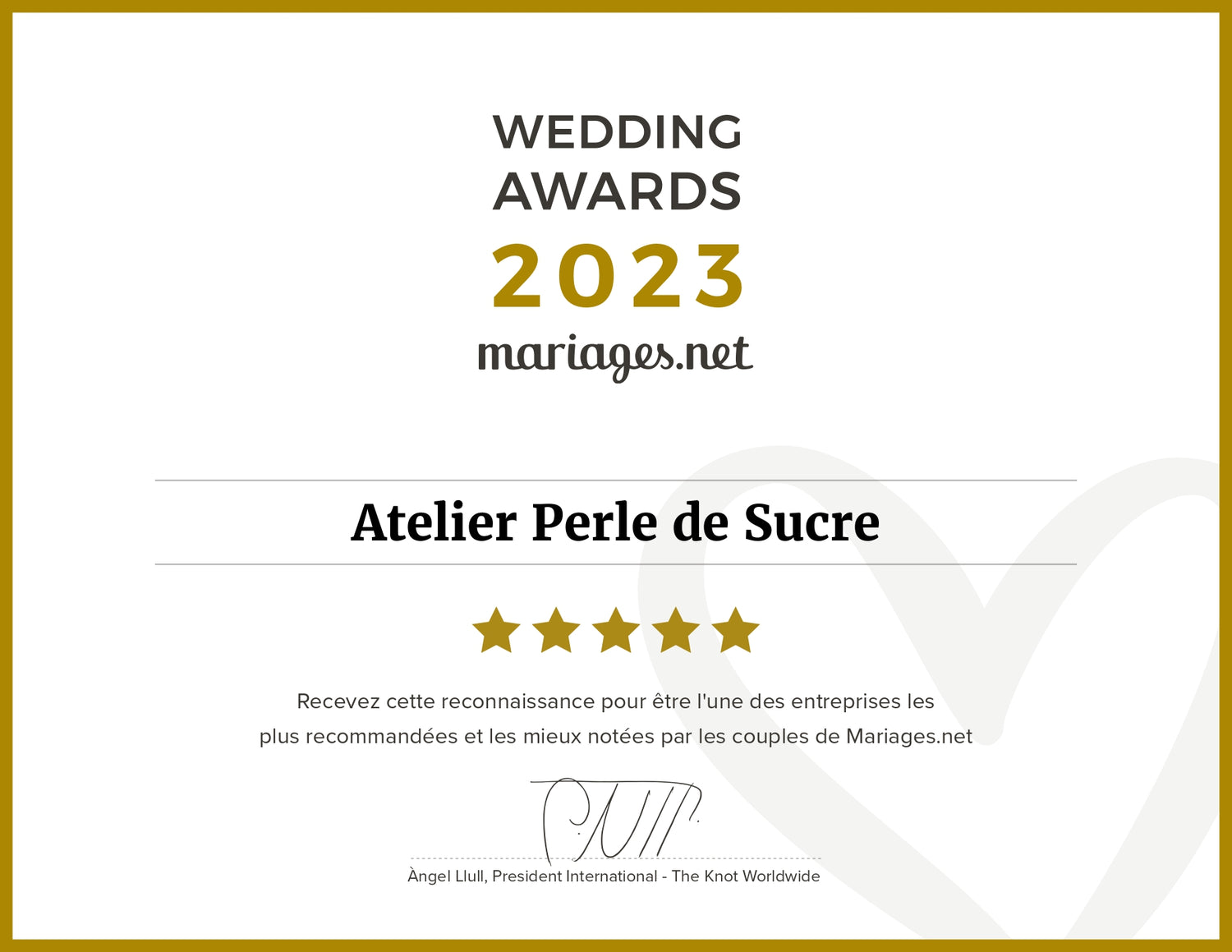 Pour la 9ème année consécutive, Perle de Sucre remporte le Wedding Award 2023 de Mariages.net, qui nous désigne comme l'une des meilleures entreprises de