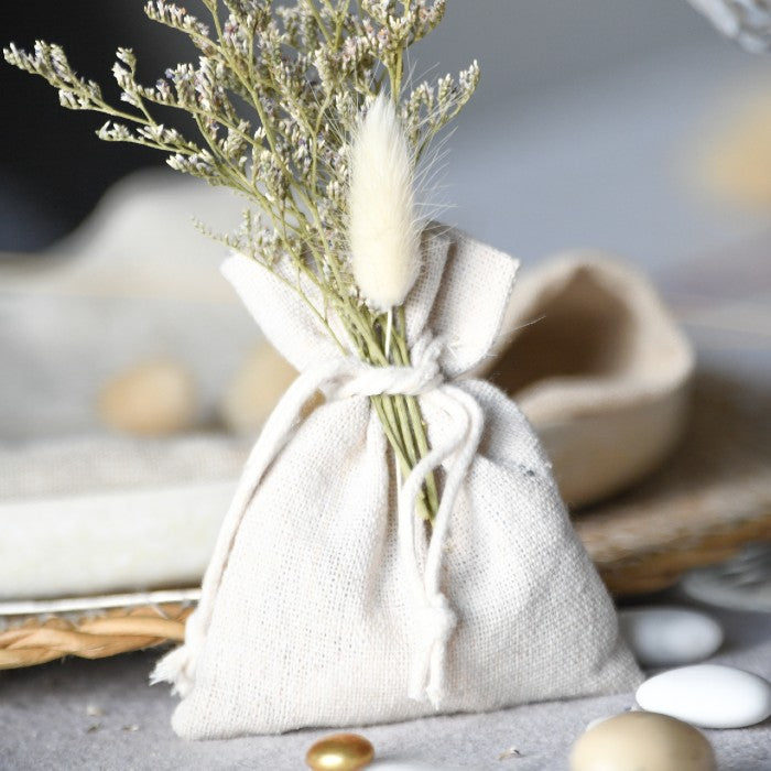 Ce pochon en tissu, élégant et naturel, est idéal pour contenir et offrir des dragées lors de mariages ou autres événements. Son design rustique et raffiné ajoute une touche authentique à chaque occasion spéciale.